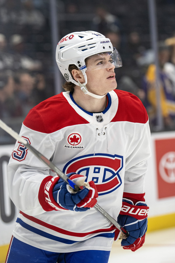 LOS ANGELES, CA – FEBRUARY 05: Montreal Canadiens right wing Cole Caufield (13) skates in warm ups before a Los Angeles Kings game versus the Montreal Canadiens on February 5th, 2025, at the Crypto.com Arena in Los Angeles, CA. (Photo by Rob Curtis/Icon Sportswire)
