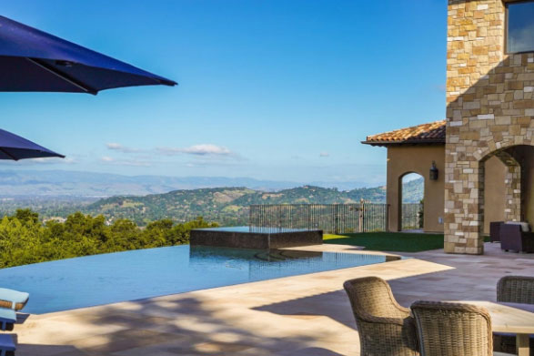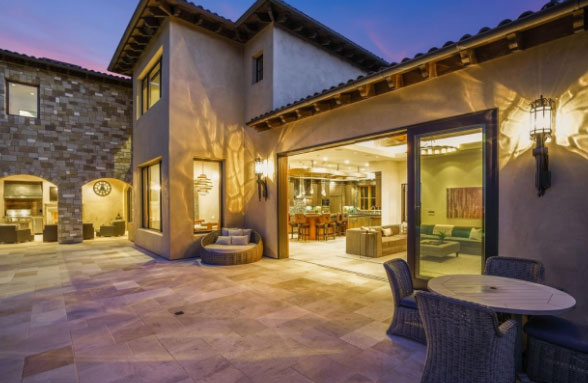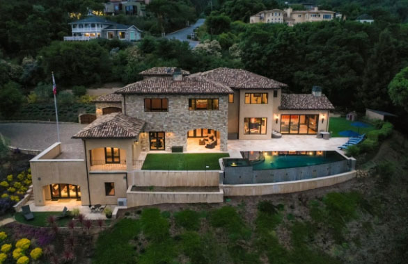The 6,422-square-foot five-bedroom, six-bathroom Tuscan-style home sits on 1.3 acres of land with breathtaking views of the valley and surrounding mountains. The modern house blends indoor and outdoor living with airy ceilings, a loggia and an infinity pool. It also includes a 659-square-foot guest house, among many other amenities.