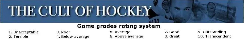 ALEC REGULA. 5. Survived a physical test. Solid defensive play on Kane in the second. Took a high hit behind the net from Kane that should have been a call. Took another (clean) heavy shot from him in the third. Has to keep his head up. Was otherwise quite good.