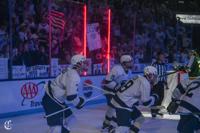 Players skate to the bench following a goal scored during the Penn State mens hockey home opening game against Clarkson on Thursday, Oct. 9, 2025 in Pegula Ice Arena in University Park, Pa. The Golden Knights beat the Nittany Lions 6-4.