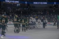 Players shake hands at the end of the Penn State mens hockey homecoming game against Clarkson on Friday, Oct. 10, 2025 in Pegula Ice Arena in University Park, Pa. The Nittany Lions beat The Golden Knights 5-2. The Nittany Lions beat the Golden Knights 5-2.