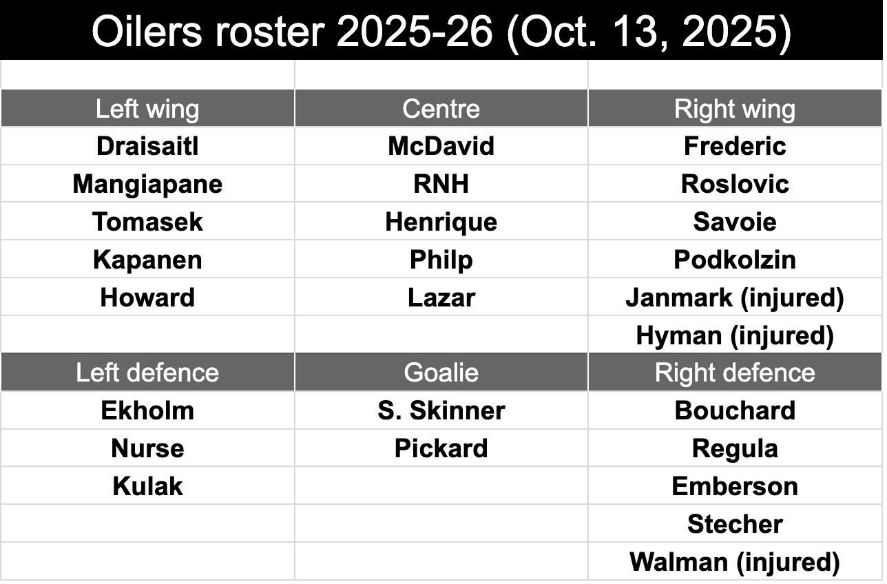 4. Where does Roslovic slot in. It’s tempting to team up such a fast player with McDavid in order to create sheer terror in the opposition. Trent Frederic was OK against Calgary and good against Vancouver on the top line, so I’m not sure if we’ll see that move.