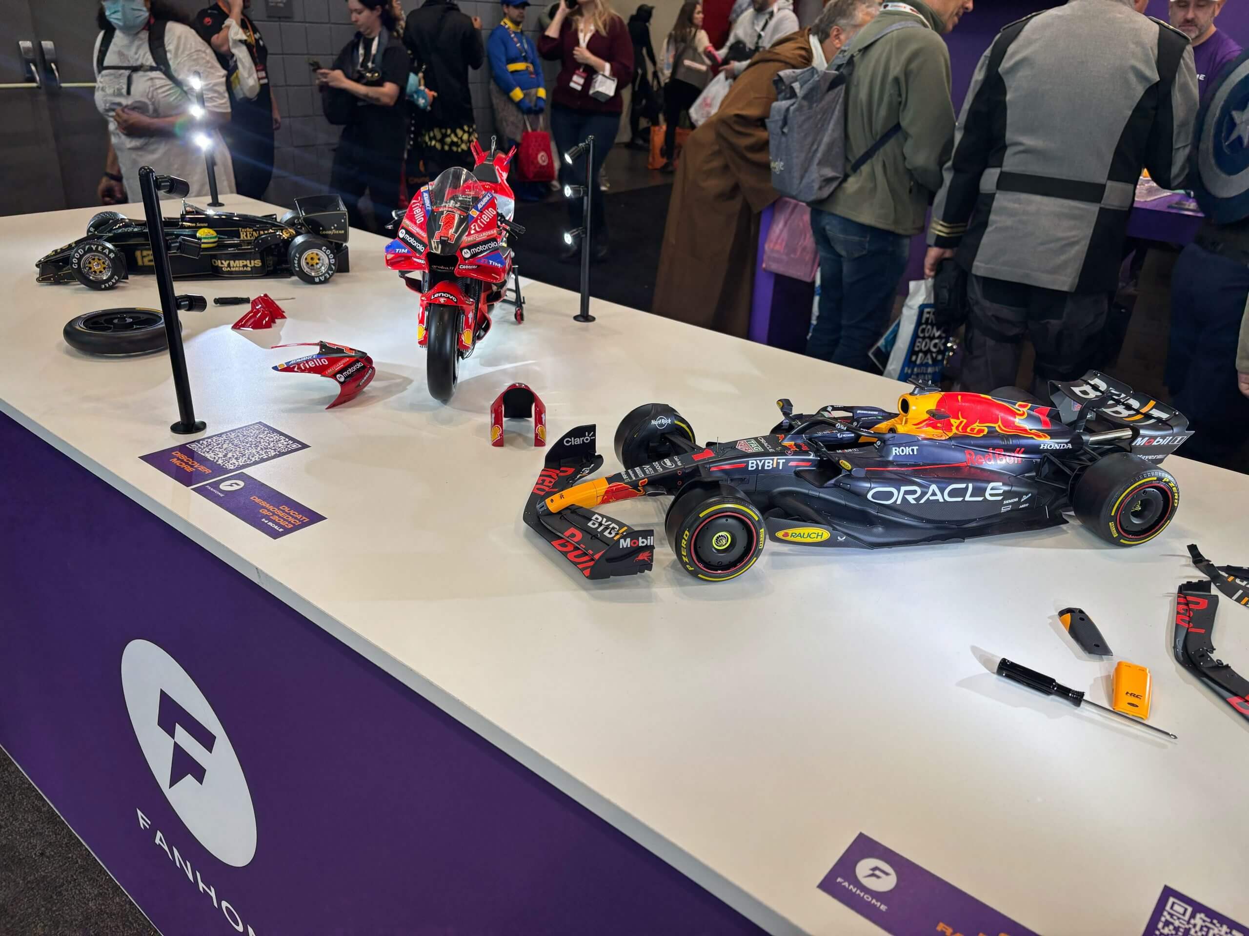 Fanhome showed off its models of a couple of iconic Formula 1 cars and the Ducati Desmosedici GP23 next to models of Darth Vader and the DeLorean from “Back to the Future.”