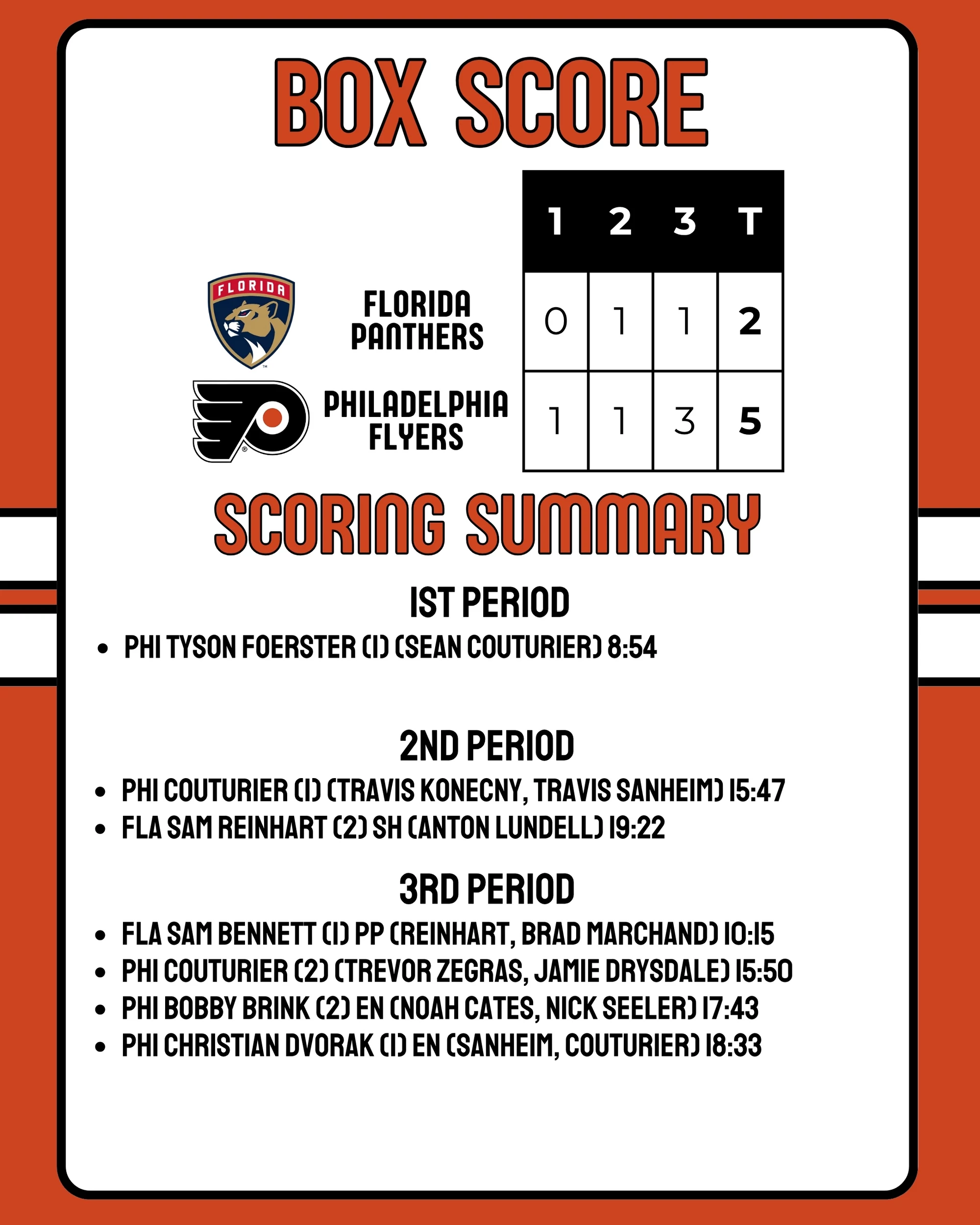 Flyers-Panthers Box Score 10-13-2025
