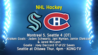 Seattle began a 6-game road trip on a losing note Tuesday in Montreal as the Canadiens came out on top in overtime 5-4. John Forslund had the call on KONG-TV.