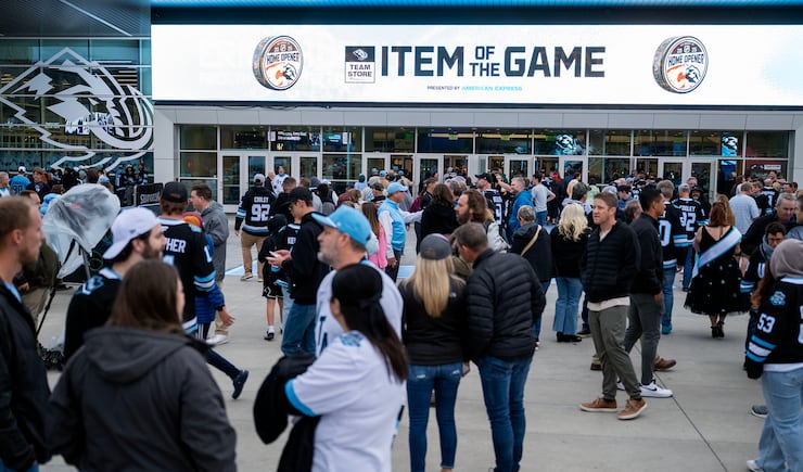 Hockey fans mill around the arena grounds as the Utah Mammoth and Calgary Flames prepare to play at the Delta Center in Salt Lake City on Wednesday, Oct. 15, 2025. | Scott G Winterton, Deseret News