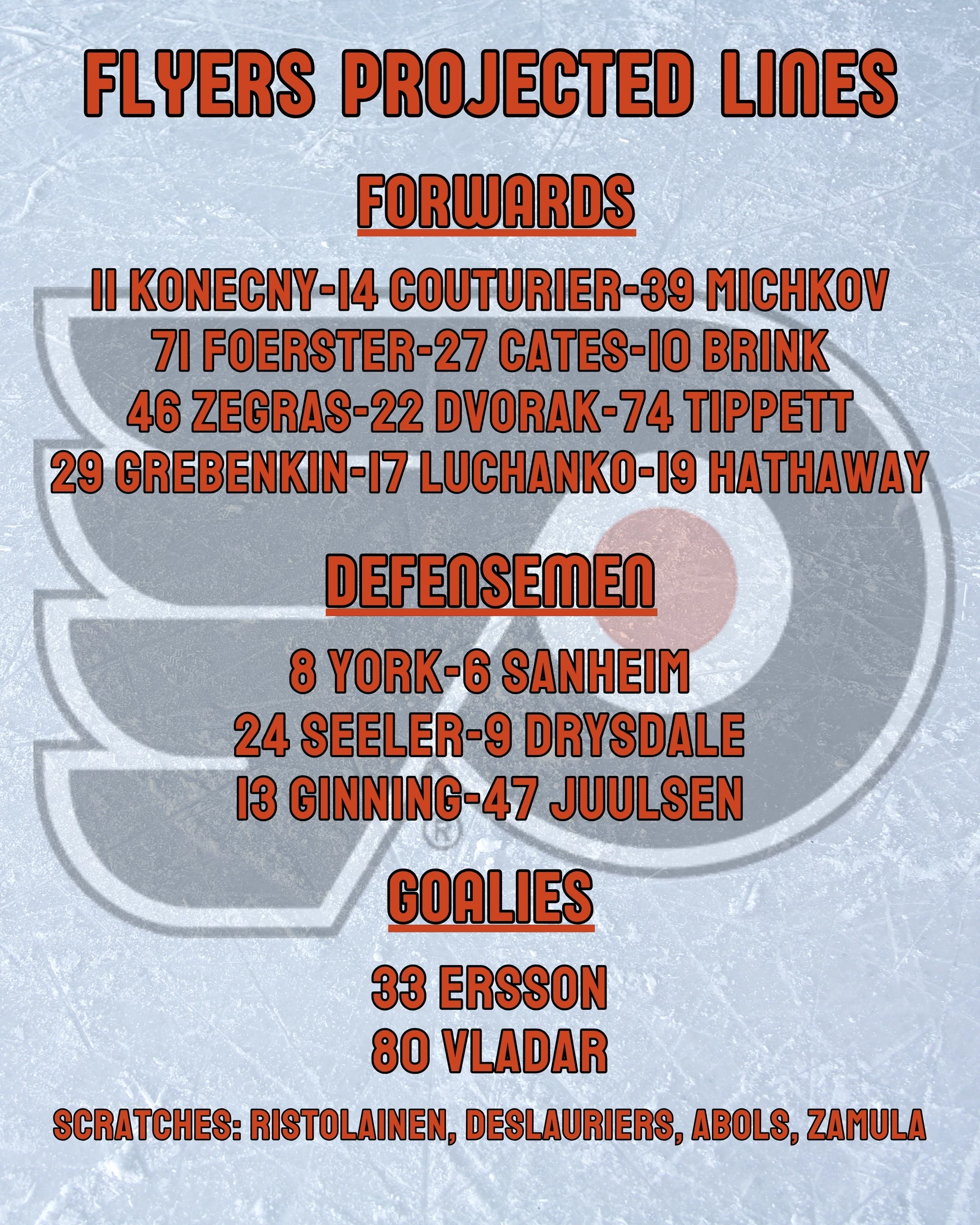 Sam Ersson gets the start for the Flyers. Ersson made 35 saves on 39 shots in his season debut against Carolina on Saturday, taking an overtime loss.
