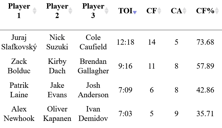 Hutson was driving the play all night, with an impressive 70 percent share of the expected goals, but I suspect his lack of production will quickly take over the narrative in Montreal now that he’s signed a new deal, even if it has not kicked in yet. The bar has been set ridiculously high, such is life.