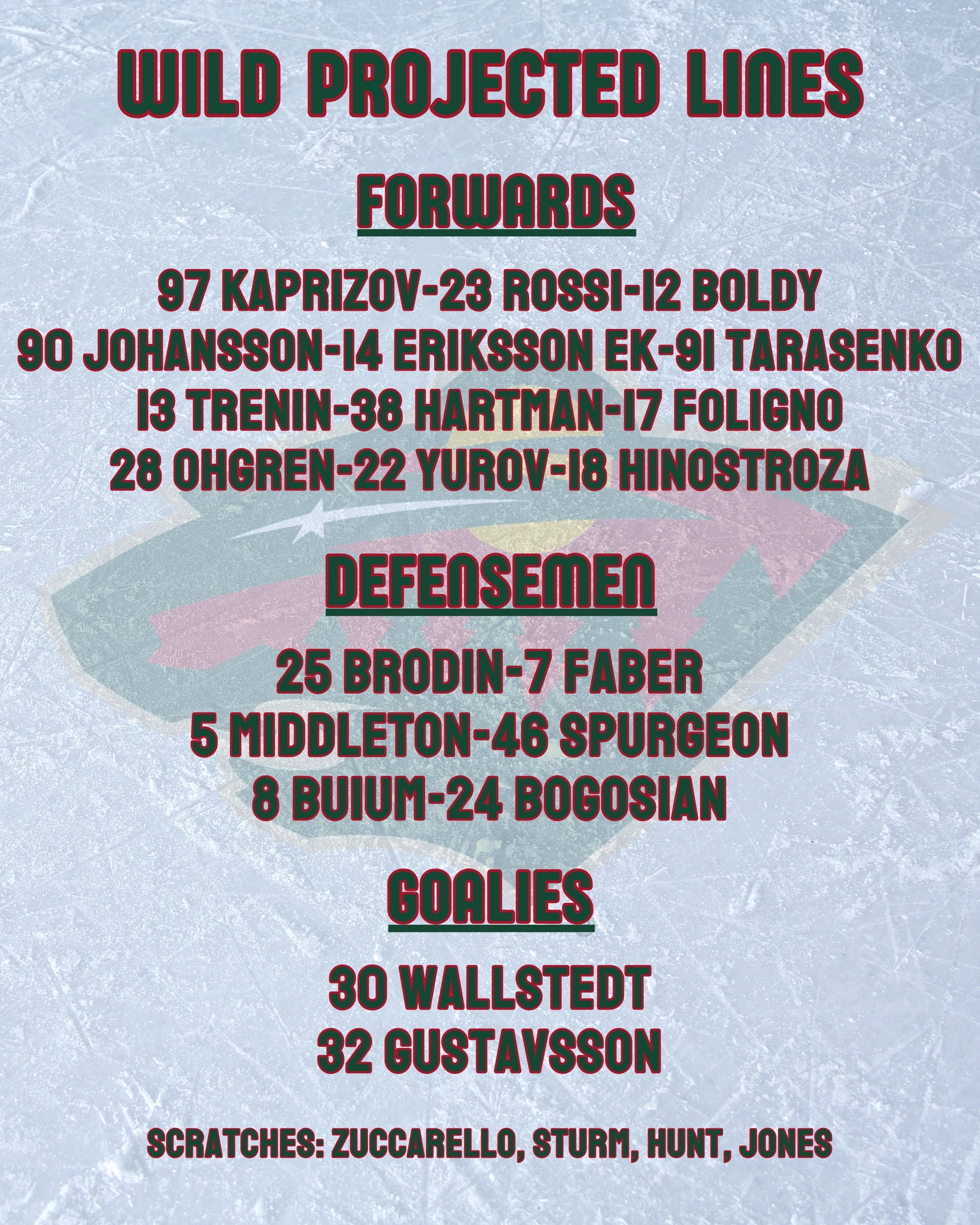 Jesper Wallstedt is expected to start for Minnesota. Wallstedt got the win in his first start of the season on Monday, making 31 saves on 34 shots.