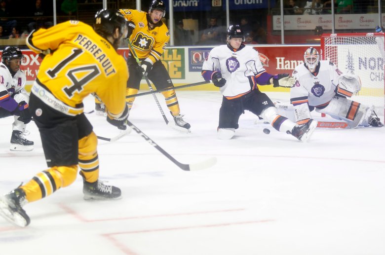 Perreault was traded twice in 2024, first from Anaheim to Montreal, where he played for the team’s AHL affiliate in Laval, Quebec, as well as five game with Trois-Rivieres, Maine’s rival in the ECHL. In December of last year, Montreal traded Perreault to Edmonton. After playing 38 games for the Oilers’ AHL club in Bakersfield, California, Perreault was a free agent this summer. He signed with the Providence Bruins in early September, and the team sent him to Maine.
