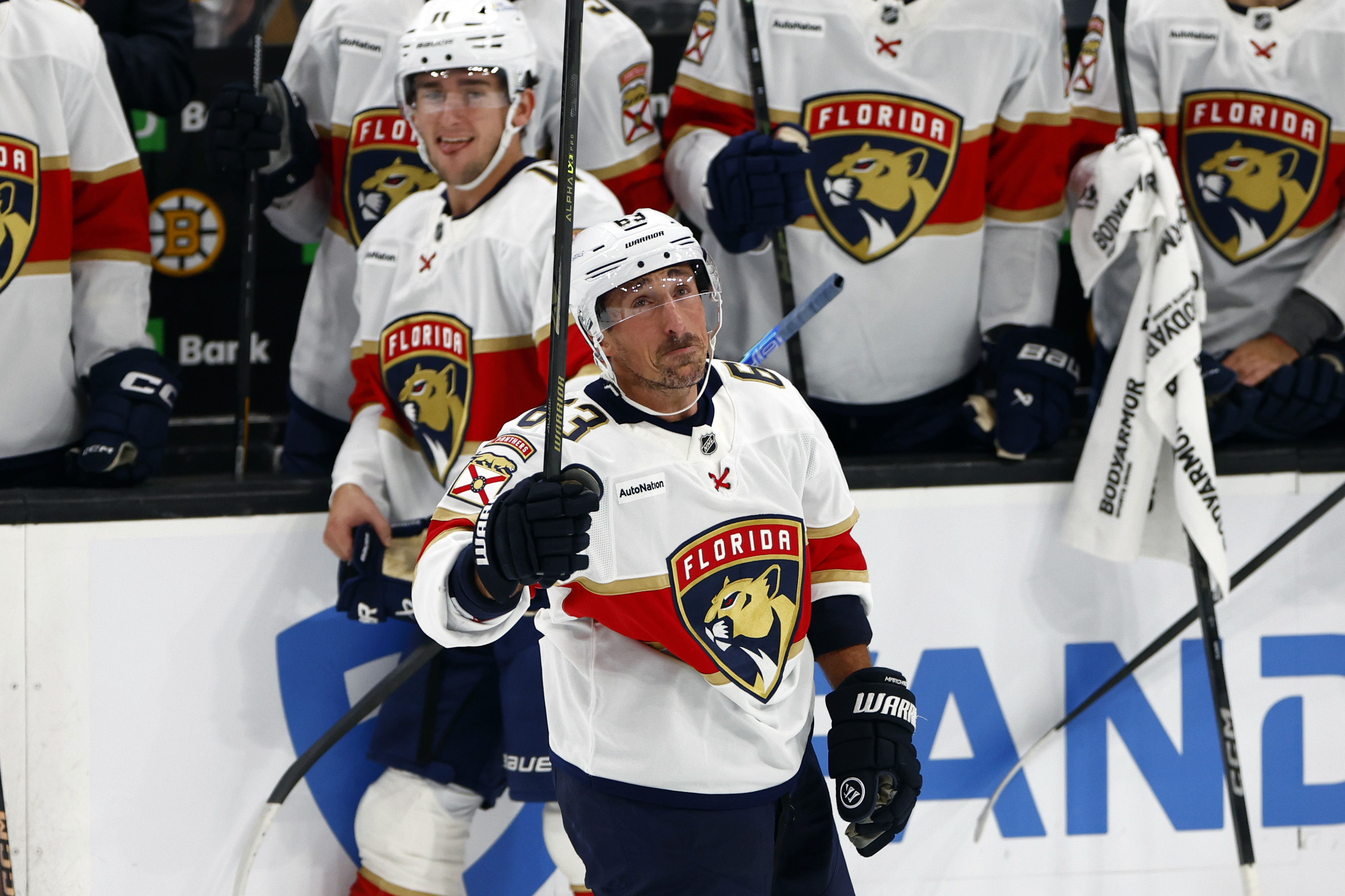 The 37-year-old NHL star was tearful as his Florida Panthers came away with the 4-3 win on the road at TD Garden.
