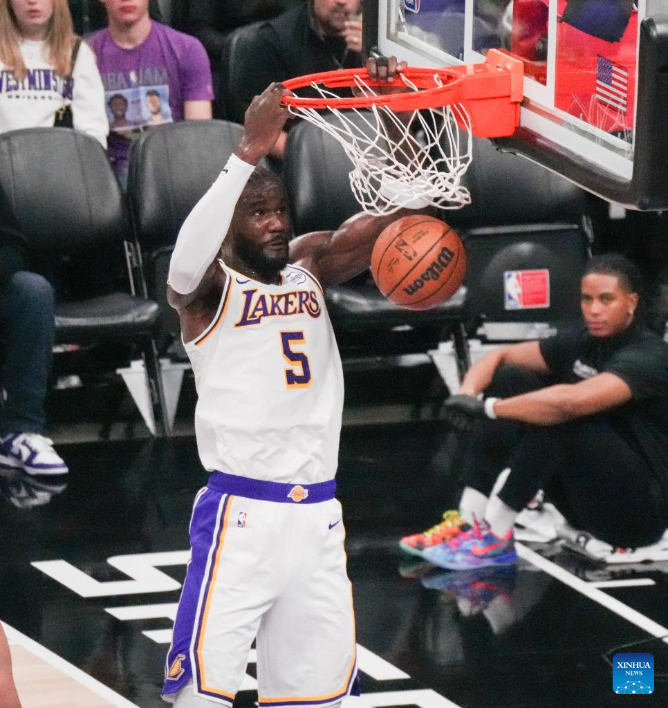 Deandre Ayton of Los Angeles Lakers dunks during the 2025-2026 NBA regular season match between Sacramento Kings and Los Angeles Lakers in Sacramento, the United States, Oct. 26, 2025. (Photo by Sun Yuxuan/Xinhua)
