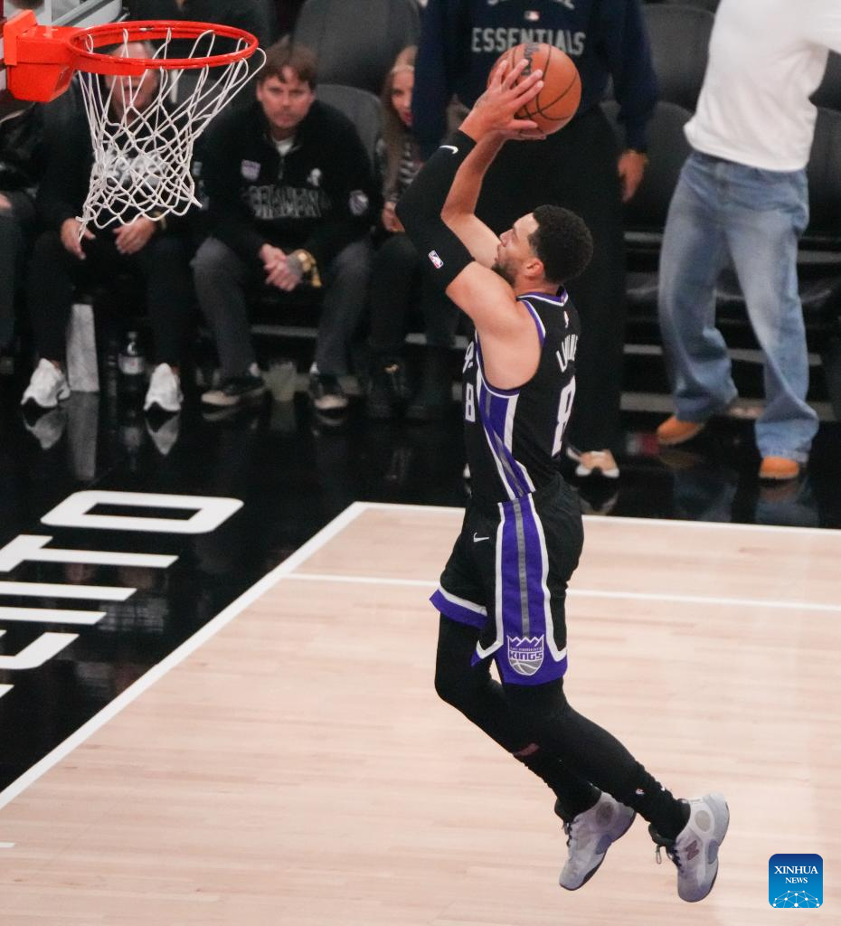 Zach LaVine of Sacramento Kings competes during the 2025-2026 NBA regular season match between Sacramento Kings and Los Angeles Lakers in Sacramento, the United States, Oct. 26, 2025. (Photo by Sun Yuxuan/Xinhua)