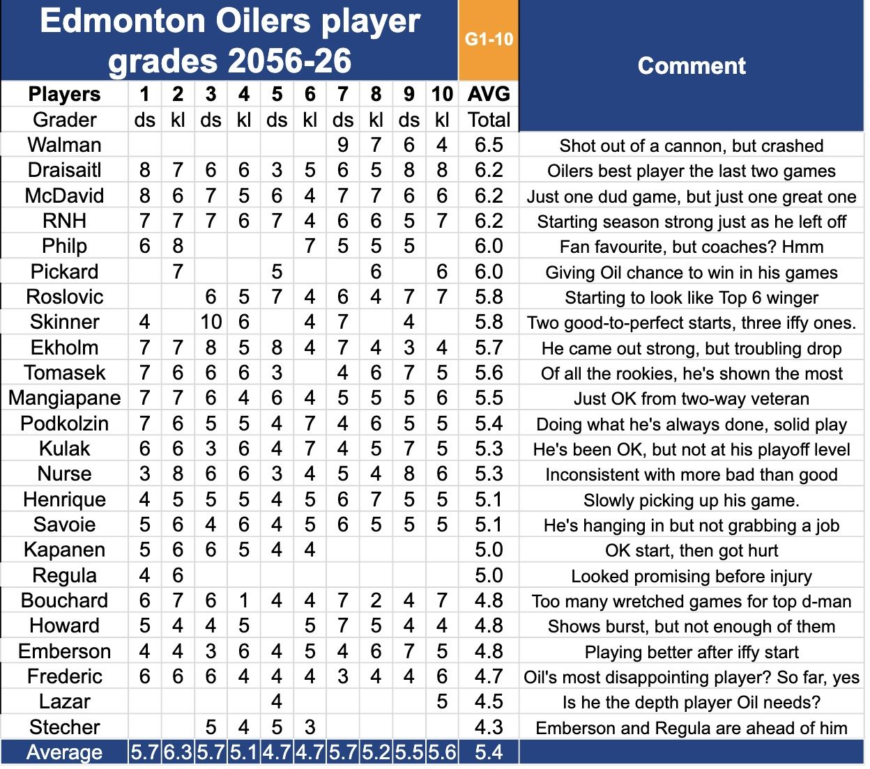 This year, in the first 10 game segment, here are Edmonton’s numbers: