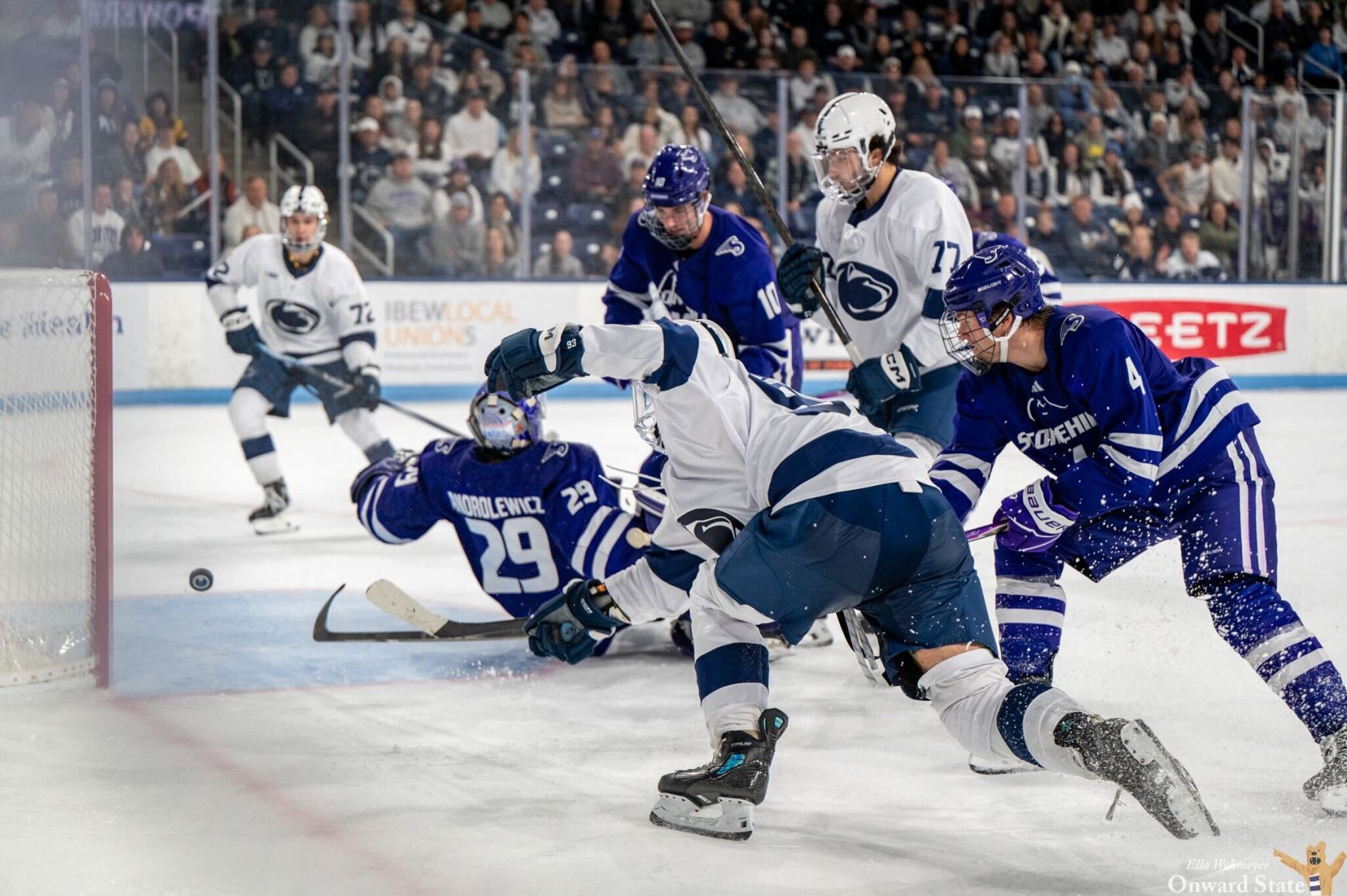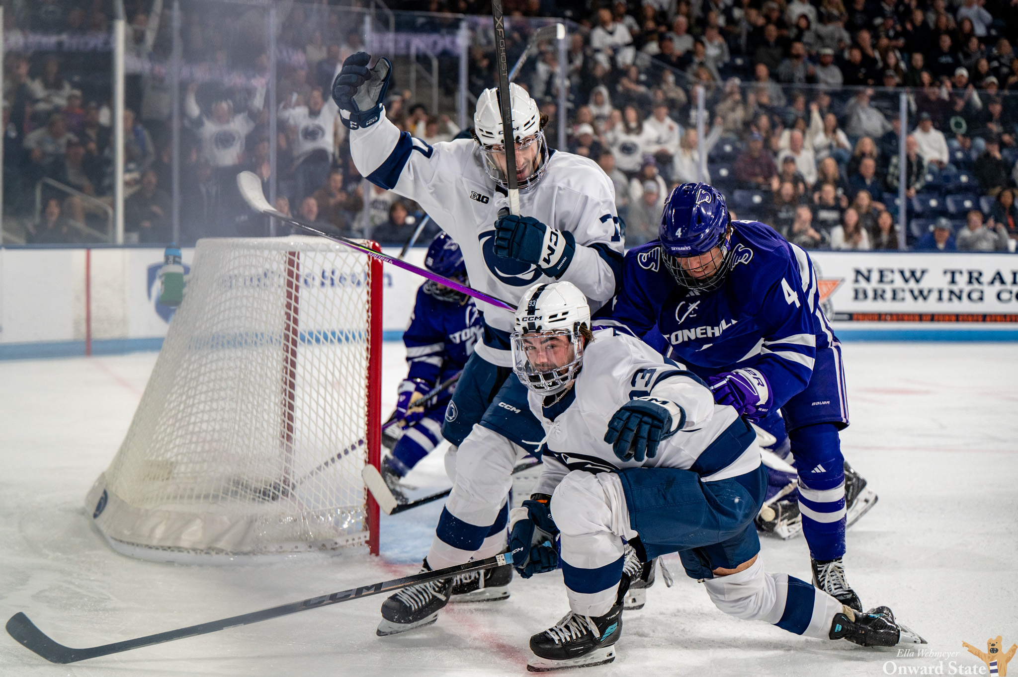 But when the NCAA changed its eligibility rules last November, allowing players from Canada’s major junior leagues to play in college, his story took a turn. On Saturday night at Pegula Ice Arena, that turn came full circle when he crashed the crease and tapped home his first goal as a Nittany Lion.