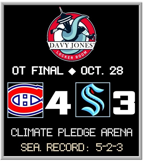 Cole Caufield (2 goals, including the OT winner, 1 assist), Nick Suzuki (3 assists), Juraj Slafkovský and Alex Newhook (1 goal each) provided the offense that built a 3-0 lead. Seattle rallied with 3rd period goals by Brandon Montour, Shane Wright, and Montour again with 1:43 left to complete an epic comeback.