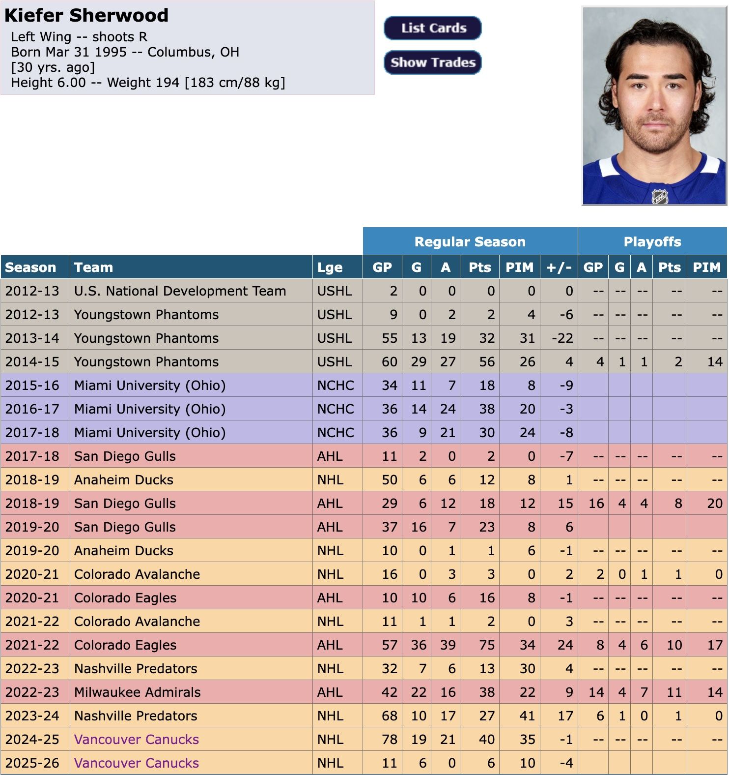 2. For Sherwood to be available at the trade deadline, Vancouver would have to be out of the playoff hunt and have good reason to believe that Sherwood did not want to sign a new contract there. Neither thing is likely to be true. It’s easy to see this Canucks team in the playoff hunt, especially if outstanding goalie Thatcher Demko stays healthy. It’s also the case that Sherwood might well want to sign with a team where he’s finally made a real mark in the NHL.