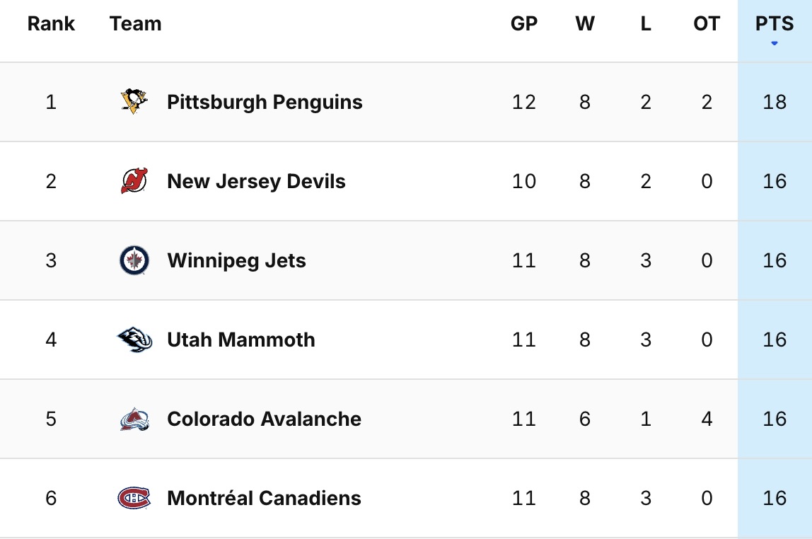 And then, formally, following a grind-it-out, goaltending-rich 4-1 flattening of the Wild on this Thursday night at Grand Casino Arena, it was looking like this in the NHL’s overall standings: