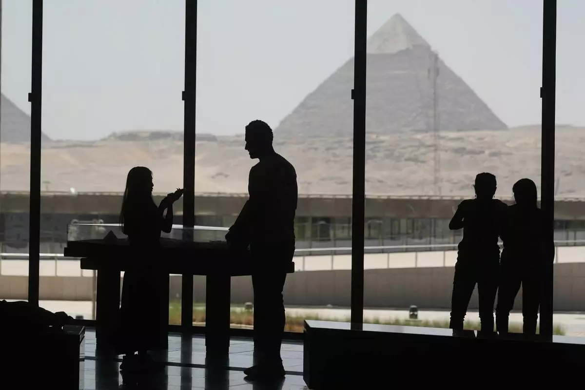 Tourists visit the Grand Egyptian Museum in Giza, Egypt, Friday, May 23, 2025. (AP Photo/Amr Nabil)