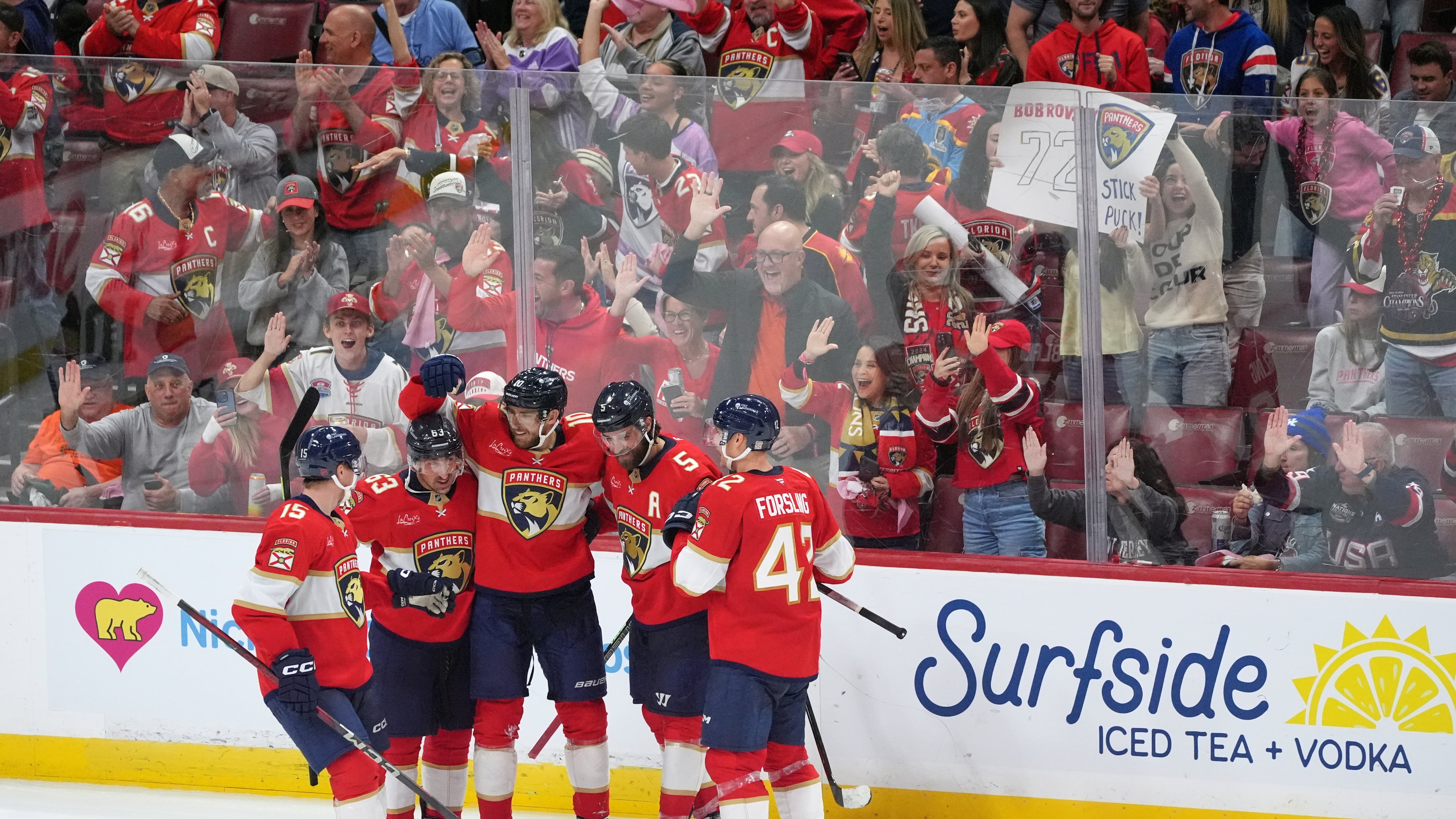 SUNRISE, Fla. (AP) — Brad Marchand put the puck in the back of the net for the Florida Panthers on Saturday night, then pointed a finger in the air and looked to the sky.