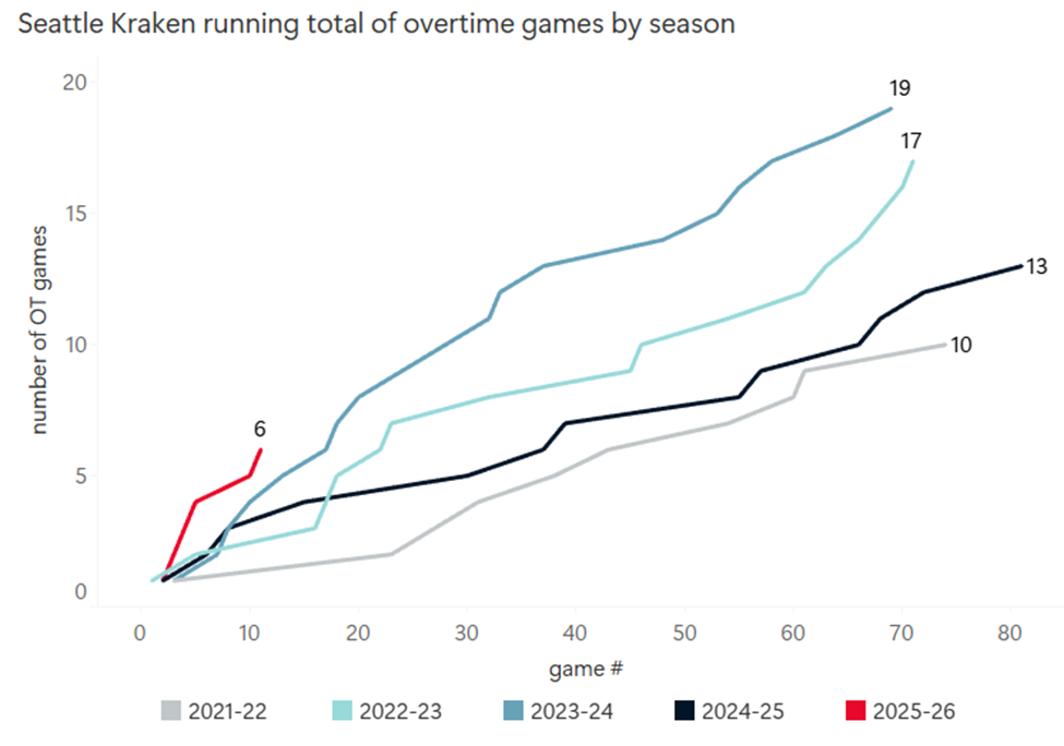 Saturday also marked the sixth overtime game of the season. The Kraken only had 13 all of last year. They’re now 2-0-4 in games that reach overtime.