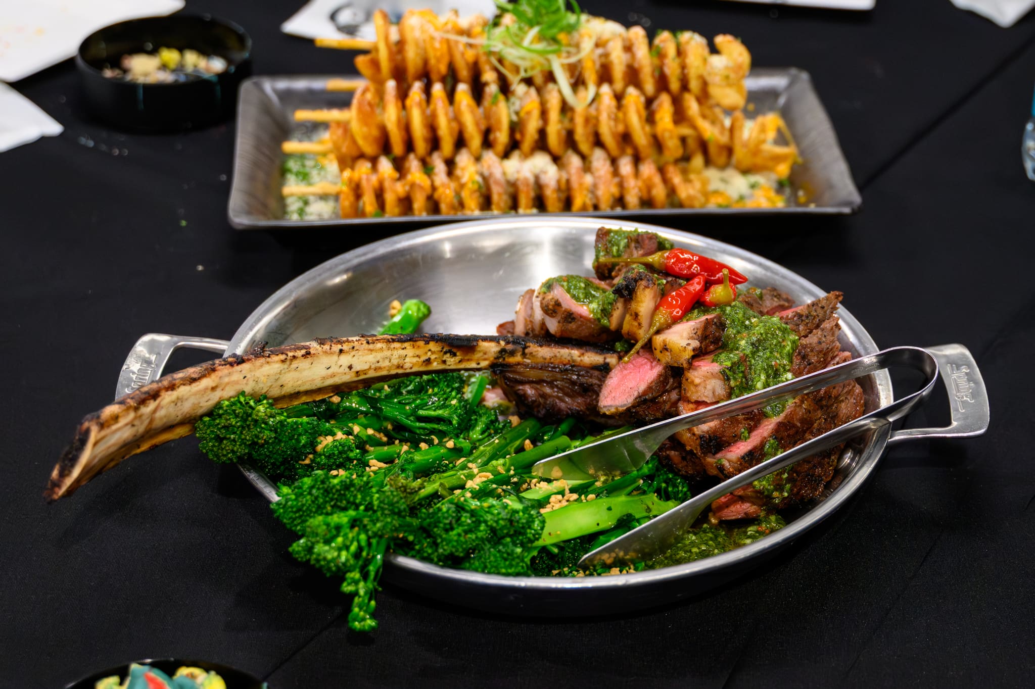 “A sizeable medium-done tomahawk cut, accompanied by broccolini and a delicious chimichurri sauce. This dish was another standout among the meat eaters: robust meat flavor, good texture, nicely balanced sides, and complimentary sauce. A proper crowd-pleaser.”