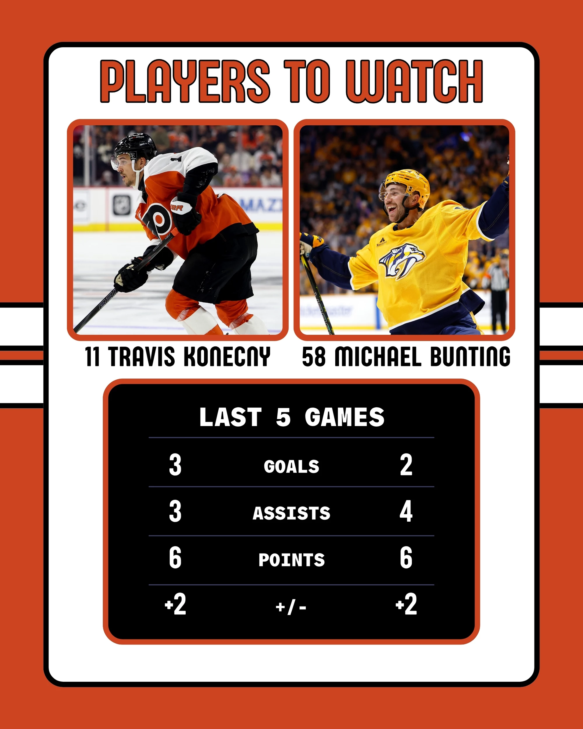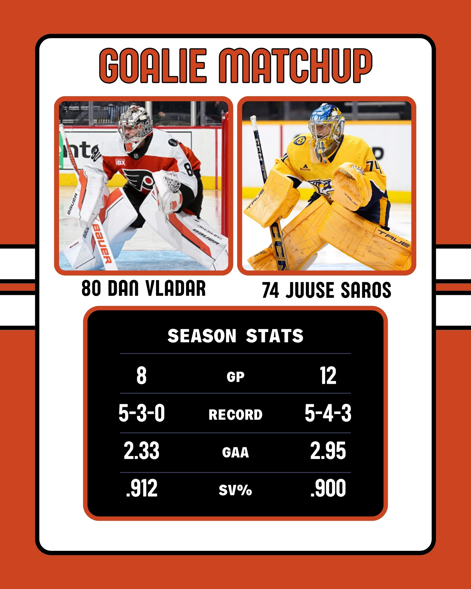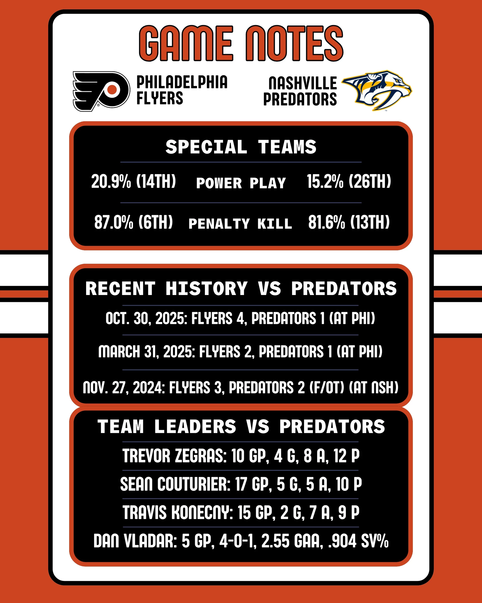 One of the other wins came a week ago against the Nashville Predators. The Flyers face-off with the Preds again, this time on the road to close out a two-game trip.