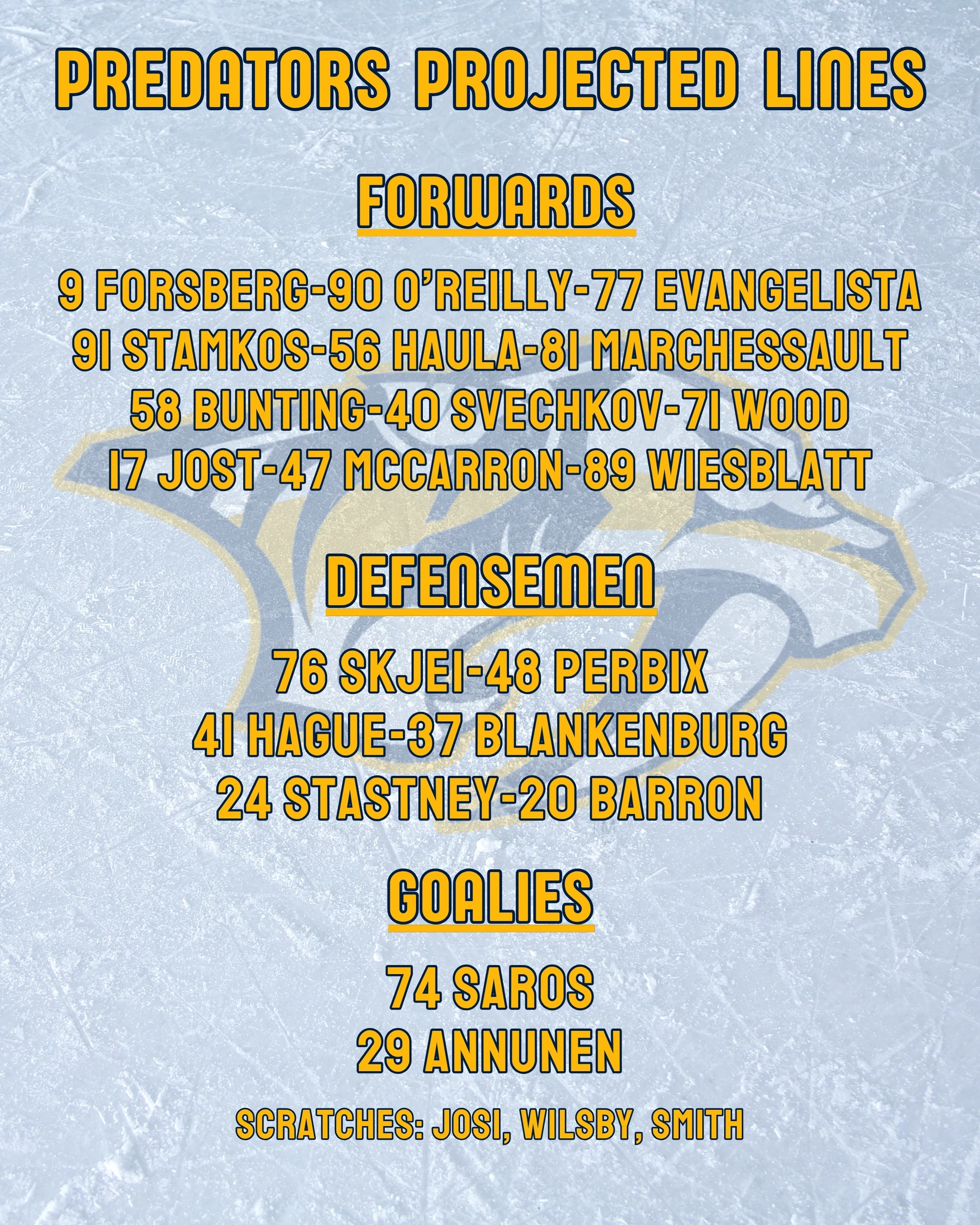 Juuse Saros gets the start for Nashville. Saros allowed five goals on 36 shots in an overtime loss to the Canucks in his last start on Monday. Saros allowed three goals on 17 shots in a loss to the Flyers last Thursday.