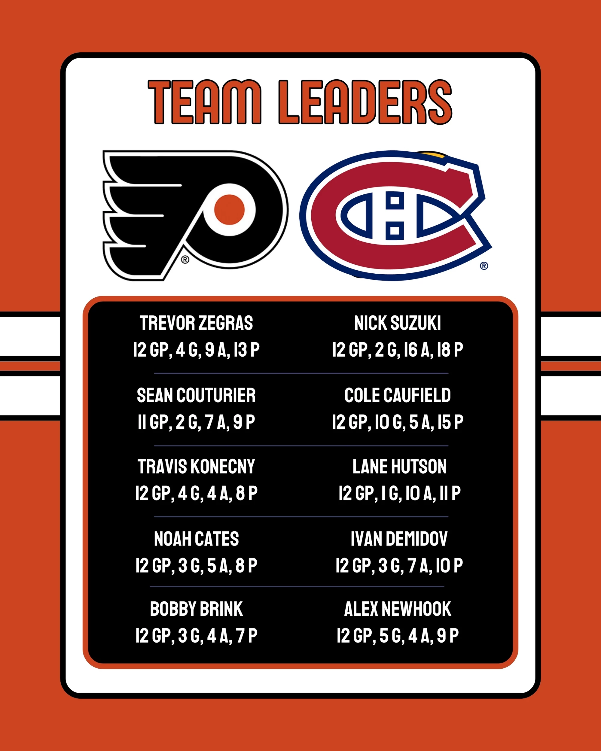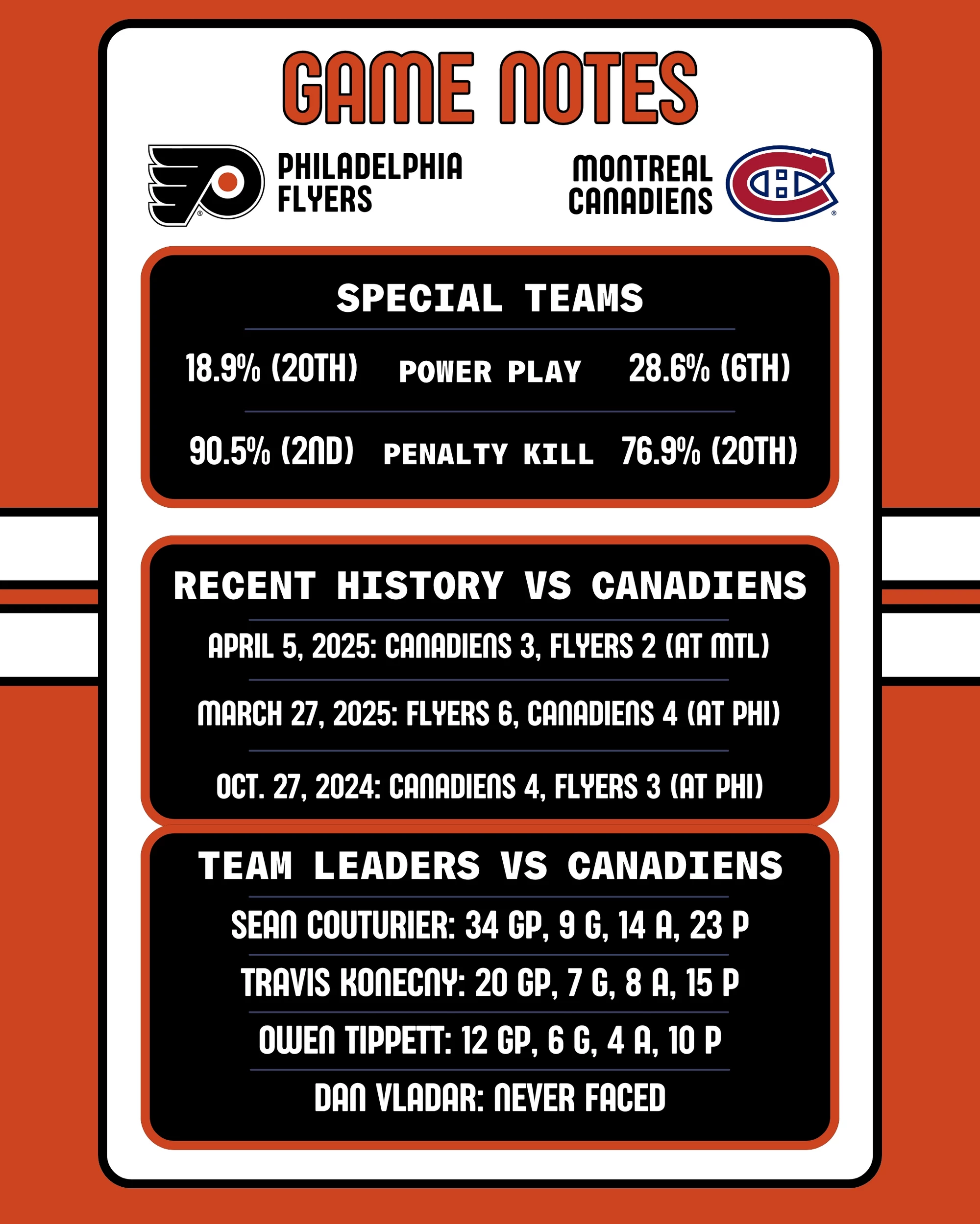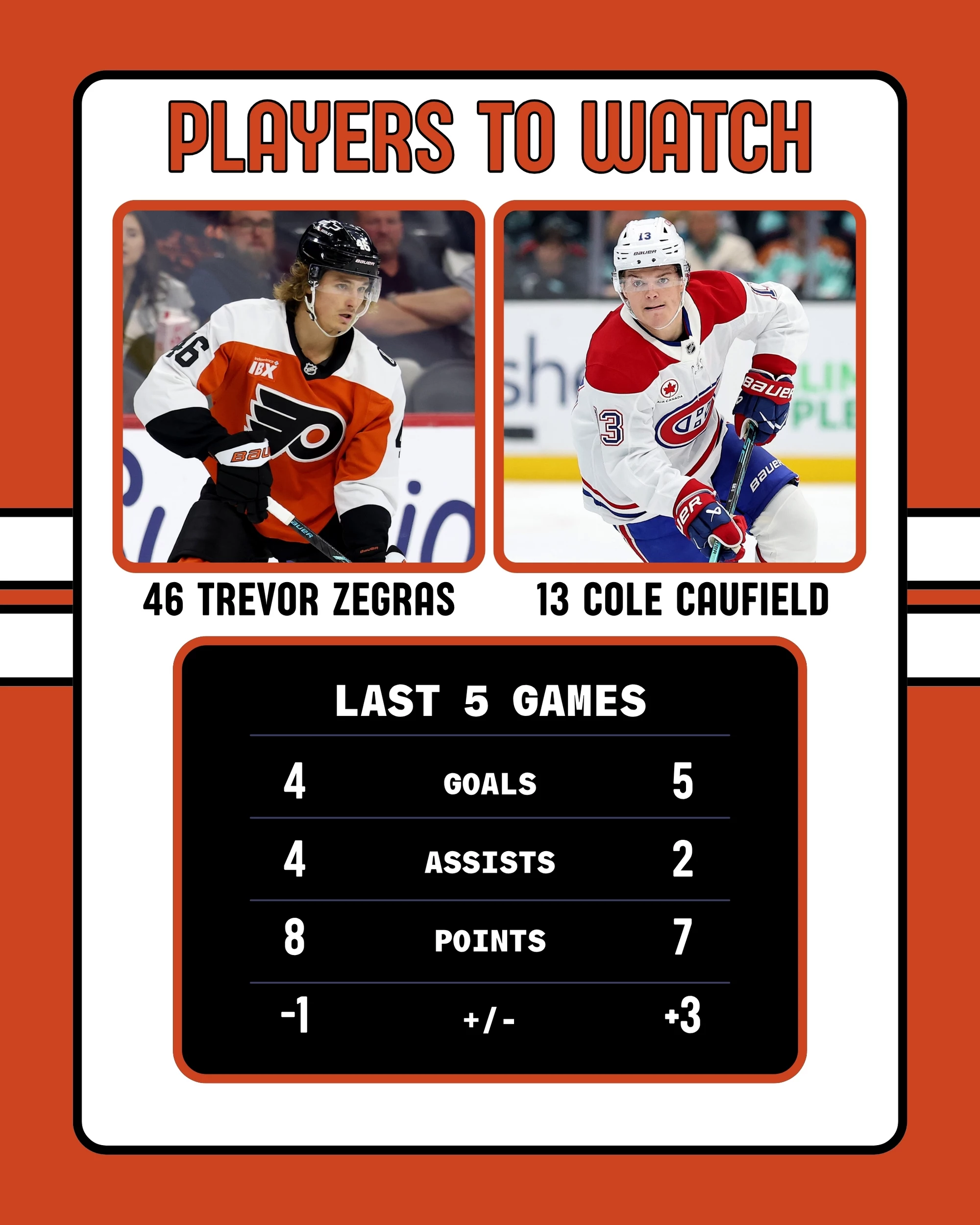 Flyers: Emil Andrae was called up on Monday and is expected to play. Tyson Foerster was placed on IR.
