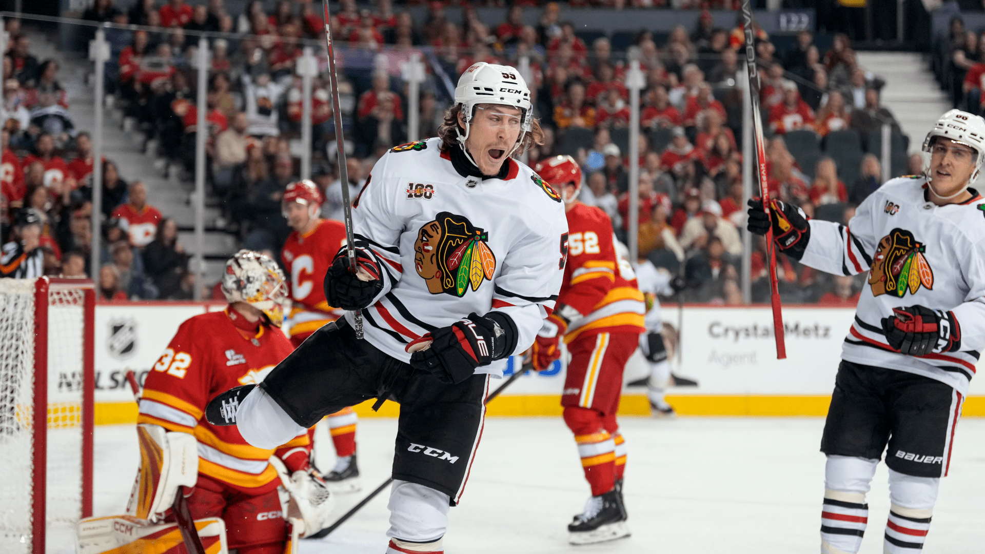 The Bedard goal was the cherry on top of a great victory. The Hawks defeated the Flames 4-0.
