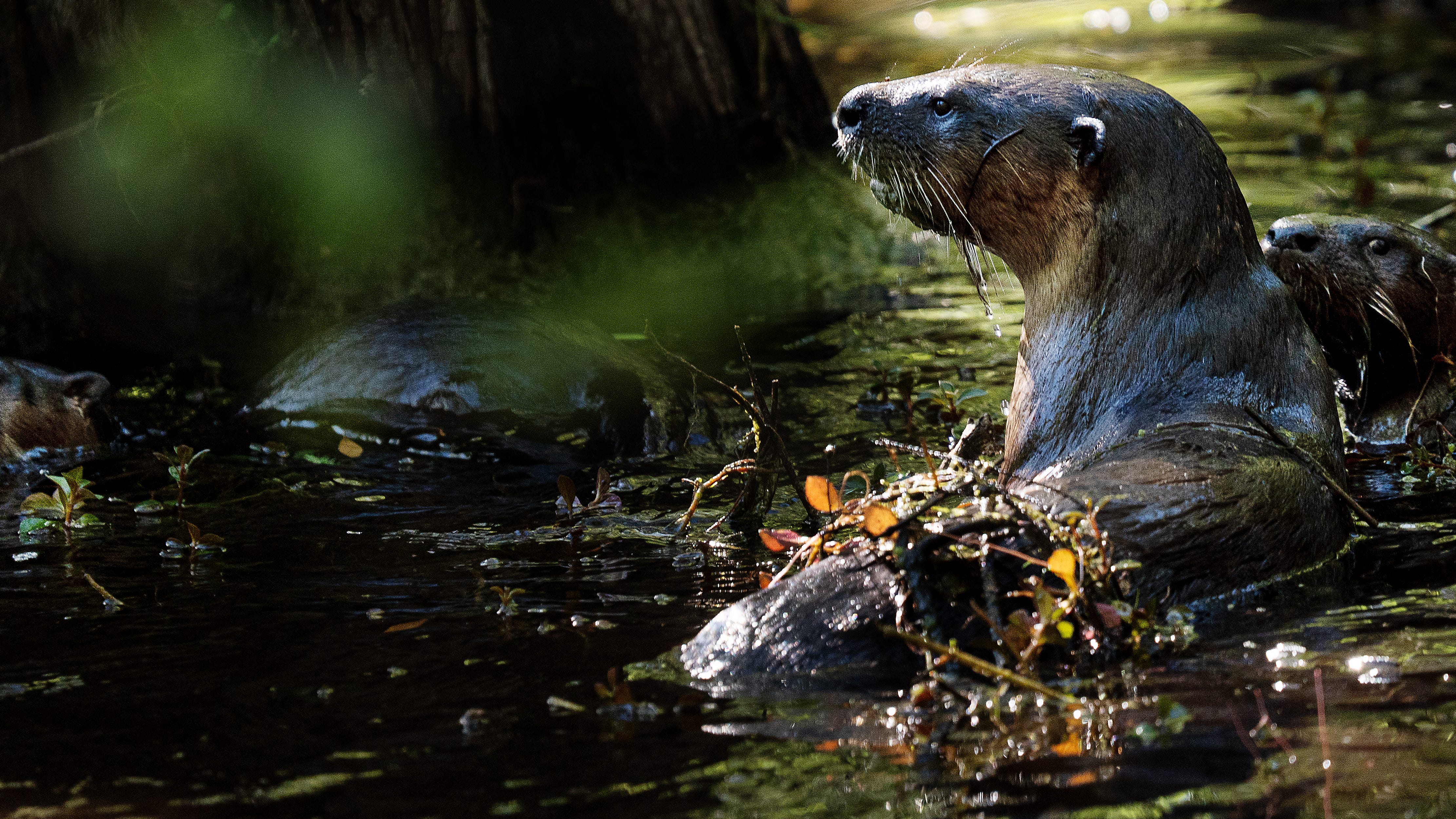 A mother otter and her pups make their way through Six Mile Cypress Slough