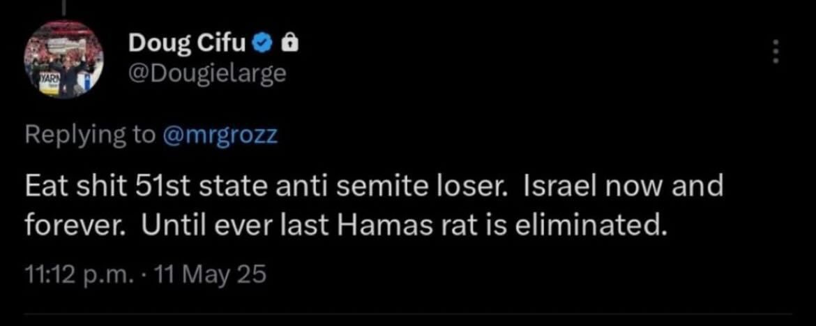 “The NHL has concluded that Mr. Cifu’s X posts were unacceptable and inappropriate. As a result, Mr. Cifu has been suspended indefinitely from any involvement with the Club and the NHL,” the league said in a statement. “An in-person meeting will be scheduled with Mr. Cifu and the Commissioner at a date to be determined.”