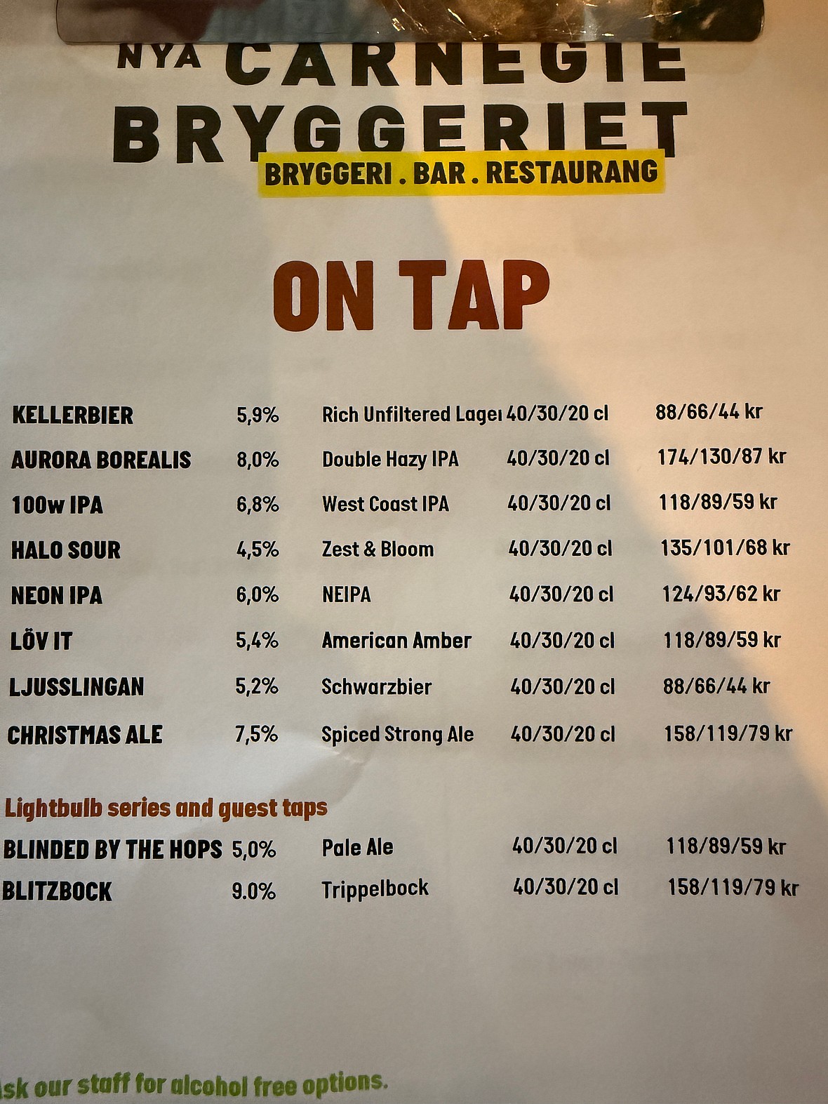 Here’s the mall where the rinks are, and Stockholm from the water, looking out the back door from the Carnegie bar, a few blocks from where I’m staying. The Christmas beer and the Ljusslingan (pronounced as it’s spelled) were quite smooth and thus very dangerous to one’s sobriety.