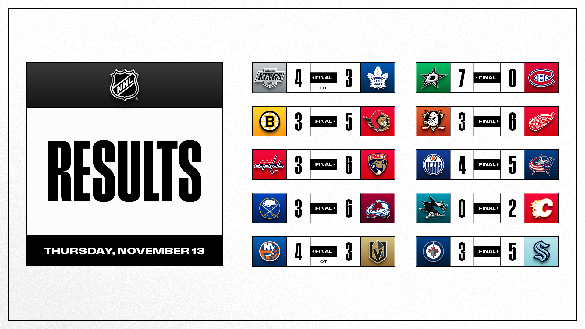 The Stars skated to a seven-goal victory on the road thanks, in part, to milestone performances from Miro Heiskanen and Wyatt Johnston. * Quinton Byfield scored the overtime winner for the Kings in his home province of Ontario and helped Los Angeles extend its road point streak to nine games.