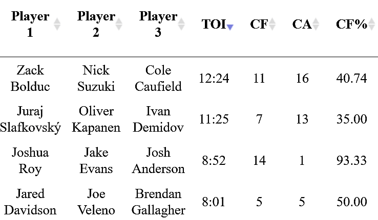 They’ll need a longer runway to build chemistry, but it does seem like Joshua Roy found instant chemistry alongside Jake Evans and Josh Anderson, as the third line controlled over 93% of the shots while they were on the ice (14-1). Unfortunately, I get the sense the only play people will remember was one that featured less-than-stellar puck management by Roy.