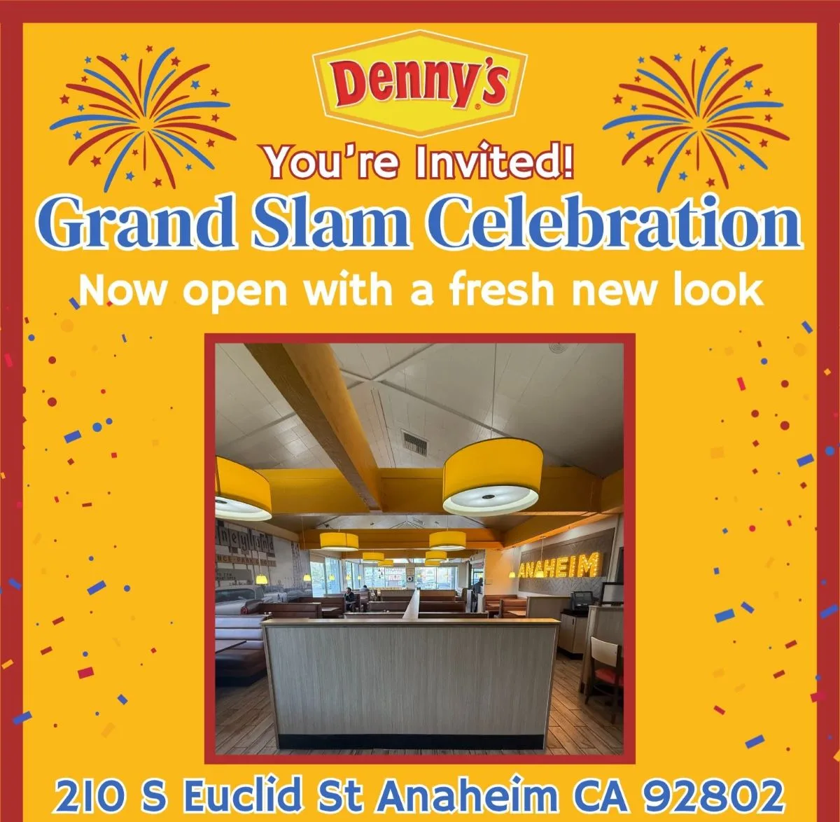 Anaheim, CA – November 18, 2025 – Denny’s at 210 S. Euclid St., in Anaheim, is inviting the community to join in the celebration of its grand reopening.
