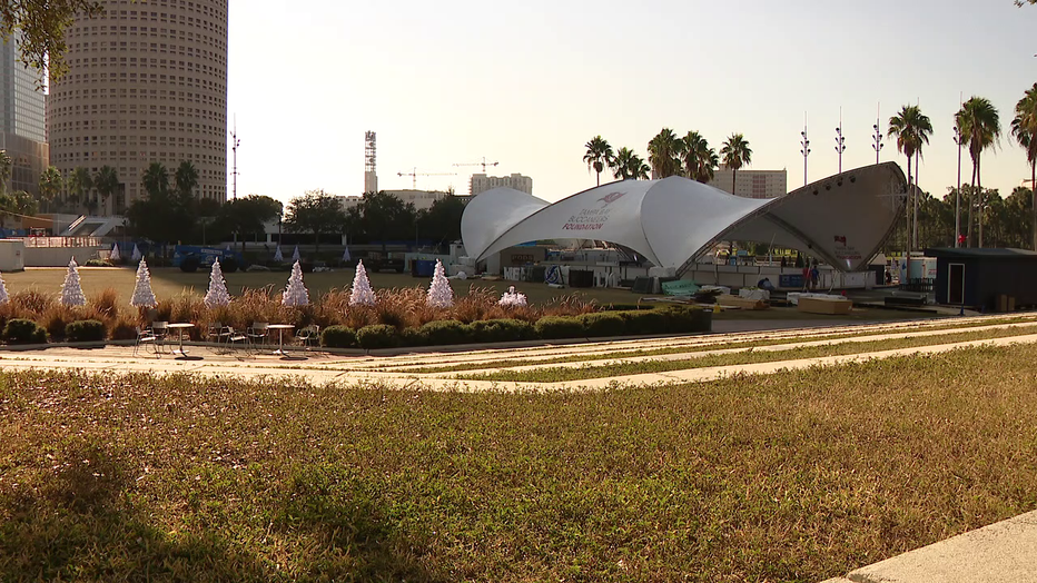 Crews in downtown Tampa are getting an early start on winter this week as they begin building the Winter Village ice rink at Curtis Hixon Waterfront Park.