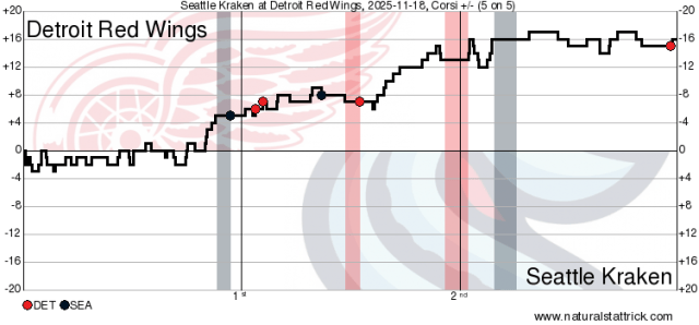 Jordan Eberle finished an honestly exceptional power play early on in the game with a back door tap-in, but special praise should go to Matty Beniers and Eeli Tolvanen as well for their heads up play during that particular man-advantage, who had the Red Wings spinning in circles. Top class stuff!