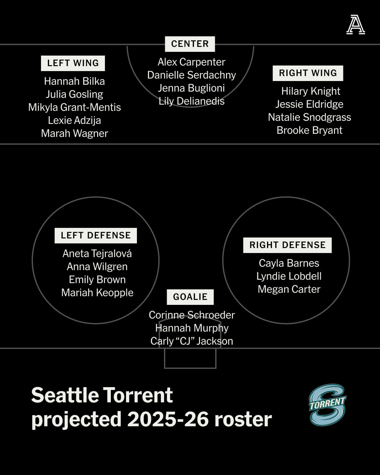 The Torrent have a potential Olympic gold-medal-winning trio of Americans on its top line, an elite No. 1 defender and one of the league’s best goalies. Throw in some depth on defense and a talented second line, and Seattle looks poised for success in Year 1.