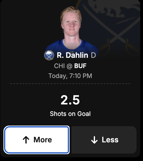 DraftKings Network projection: 55% likely to have MORE than 2.5 Shots on Goal