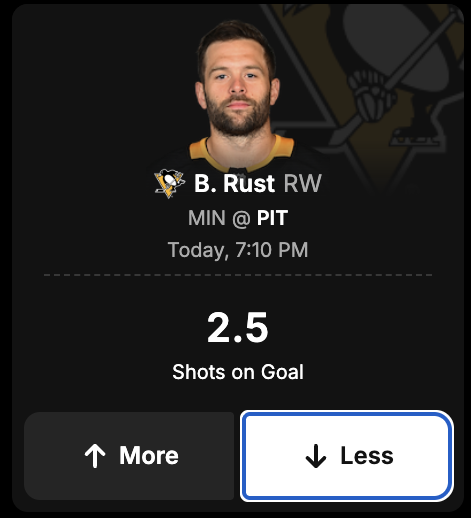DraftKings Network projection: 55% likely to have LESS than 2.5 Shots on Goal