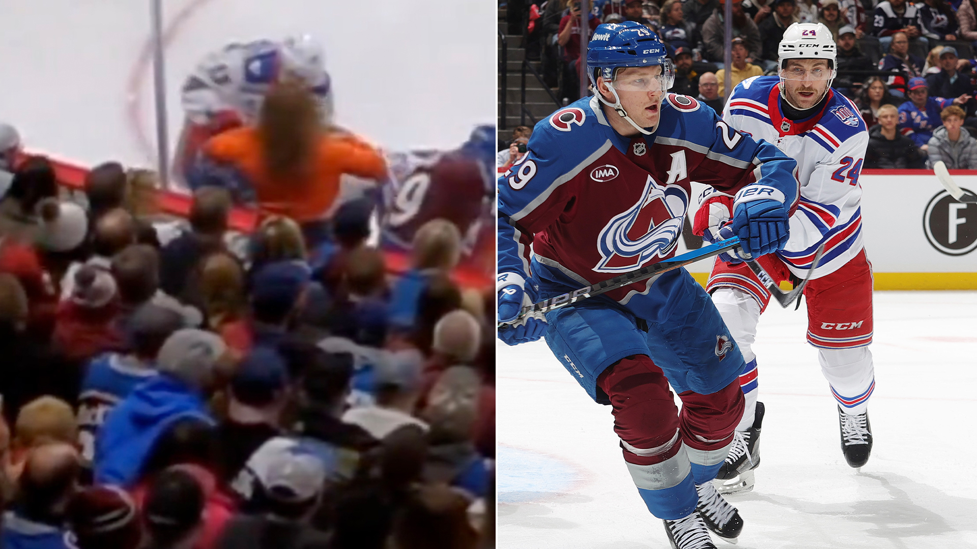 The hockey fan was seated in the front row during the Avalanche’s 6-3 win over the Rangers on Thursday night.