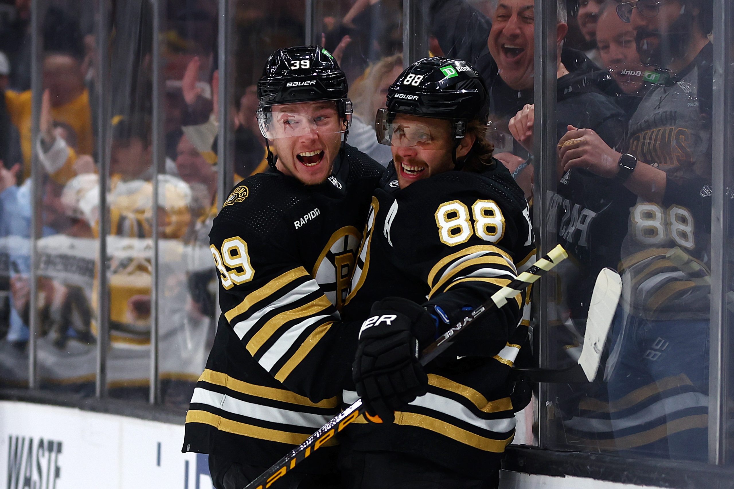 Morgan Geekie and David Pastrnak have become a lethal duo for the Bruins. (Maddie Meyer / Getty Images)