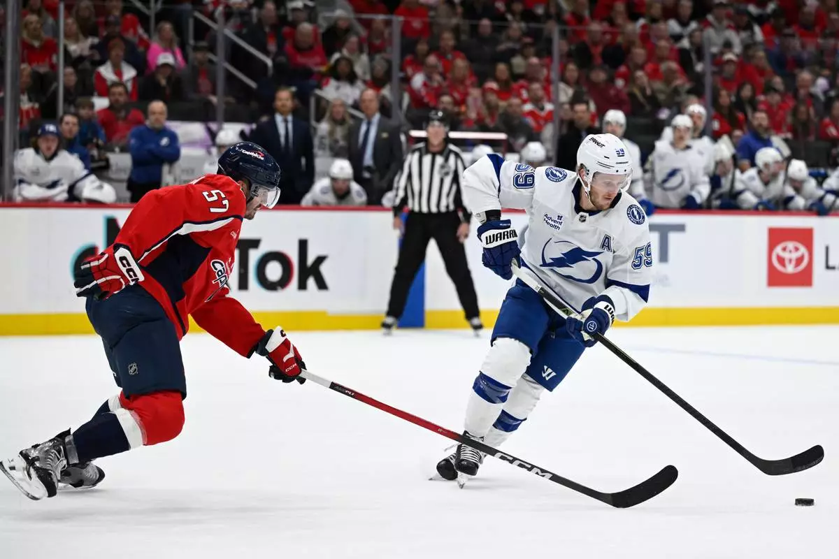 WASHINGTON (AP) — Brandon Hagel scored two goals and added two assists and the Tampa Bay Lightning beat the Washington Capitals 5-3 on Saturday night.