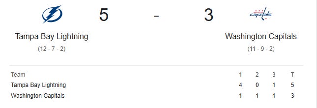 Hagel gets 4 points, Lightning edge Capitals for 3rd straight win [NHL.com]