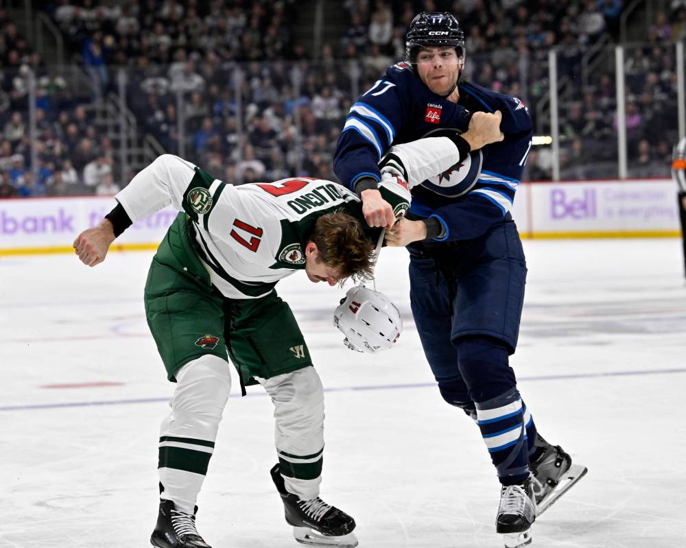THE SCRAP – With the Jets off to a sluggish start to the second period after an evenly-played first, captain Adam Lowry went over to Marcus Foligno prior to a faceoff in the offensive zone and the Wild forward accepted the invitation to tussle.