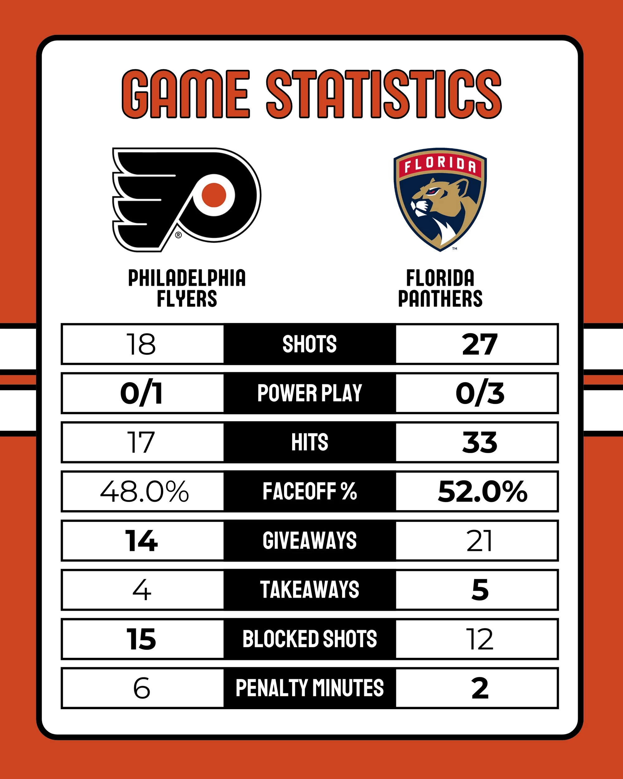 Flyers-Panthers Box Score 11-26-2025Flyers-Panthers Box Score 11-26-2025Flyers-Panthers Game Statistics 11-26-2025Flyers-Panthers Game Statistics 11-26-2025Video Recap