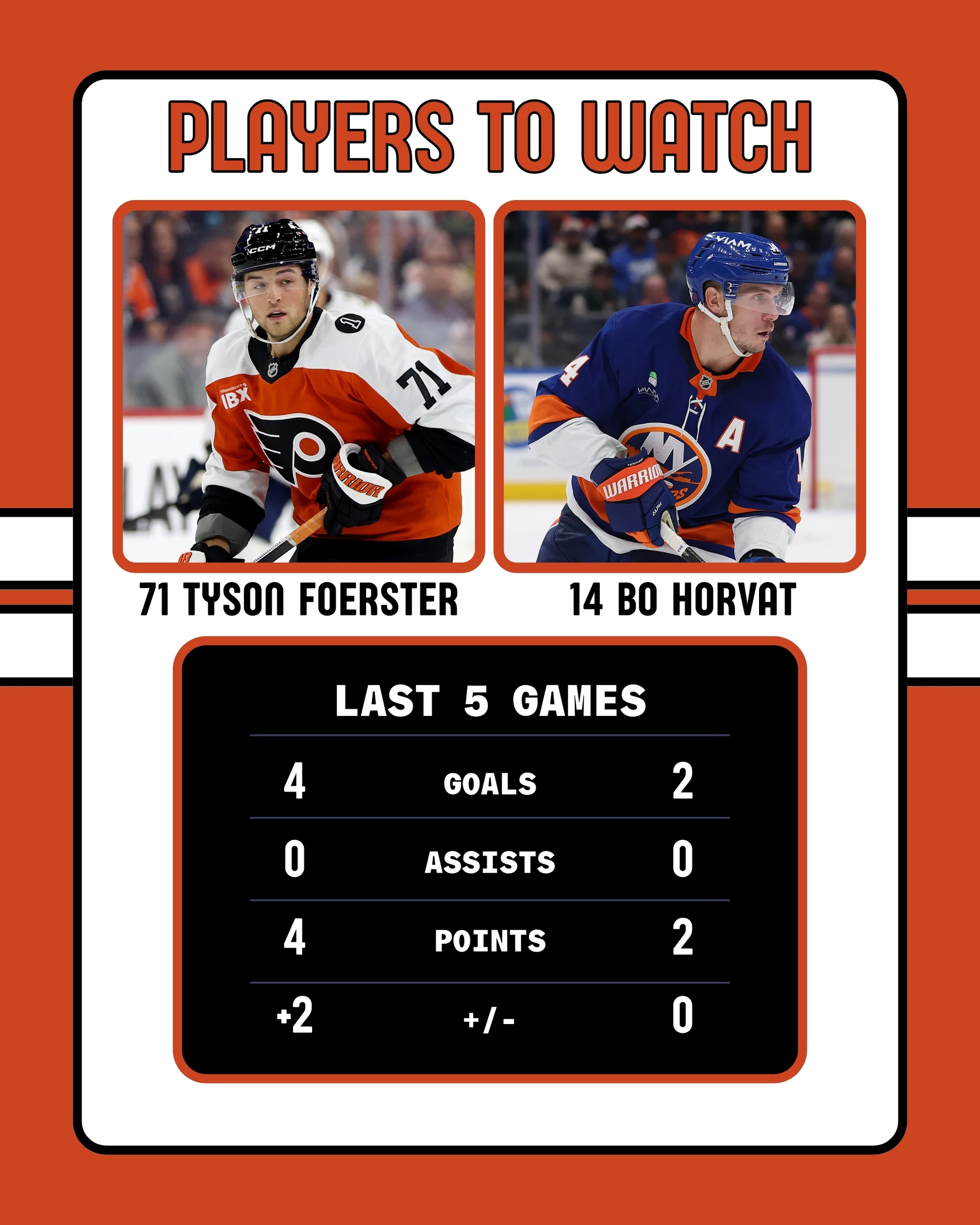 Flyers-Islanders Team Leaders 11-28-2025Flyers-Islanders Team Leaders 11-28-2025Flyers-Islanders Players to Watch 11-28-2025Flyers-Islanders Players to Watch 11-28-2025