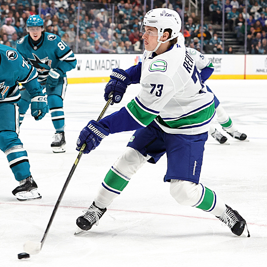 Canucks forward Lukas Reichel takes a shot on goal – Photo by Jack Lima