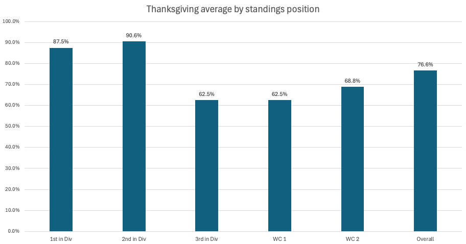Here is a breakdown of how each standings position fares in reaching the postseason at Thanksgiving.